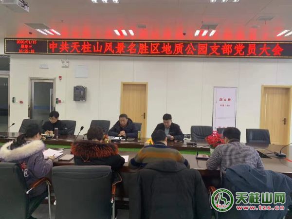 2020年1月15日,中共天柱山風(fēng)景名勝區(qū)地質(zhì)公園支部召開(kāi)黨員大會(huì),支部全體黨員參加會(huì)議,風(fēng)景區(qū)黨委委員、天管會(huì)副主任王晨東蒞臨會(huì)議指導(dǎo)。