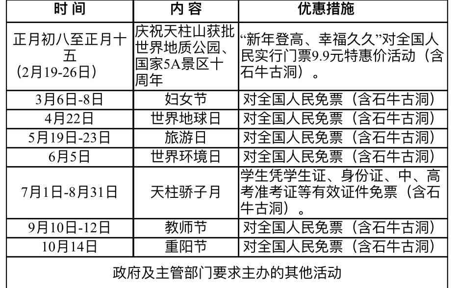 1、專列人數達到200人以上、專船人數達到200人以上、包機人數達到100人以上,門票按全價票訂票,結算按20元/人,且包含石牛古洞。