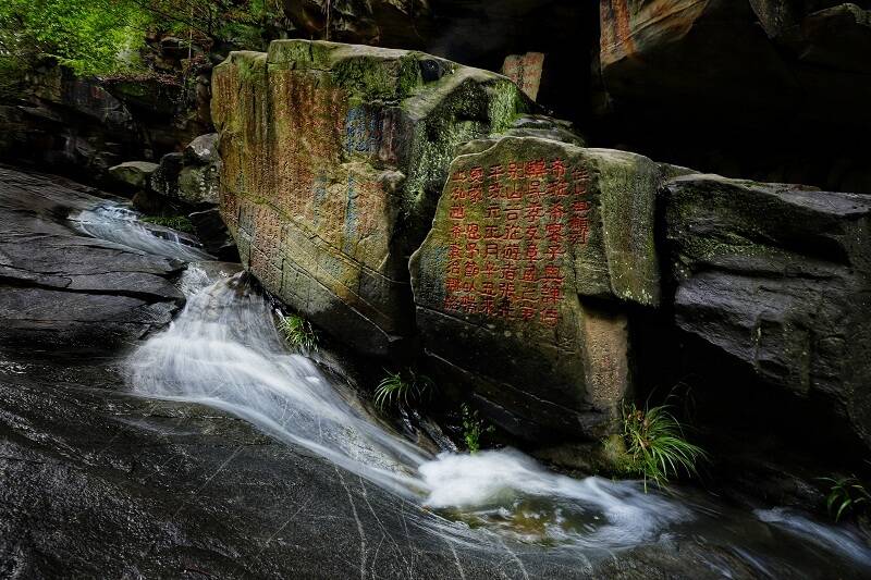 古時(shí),王安石在這里坐石而忘了憂愁,黃庭堅(jiān)甚至將此視為安身立命之所。蘇軾、朱熹、李公麟等名家或愜意夜游,或吟詩(shī)歌賦,留下了400余方縱肆的書(shū)法石刻。面對(duì)先賢的摩崖石刻,往來(lái)喧囂之心會(huì)變得安靜和謙卑。這里環(huán)境幽靜、植被茂密、溪水潺潺,是天然的“氧吧”,更是避暑消夏的好“涼”方。