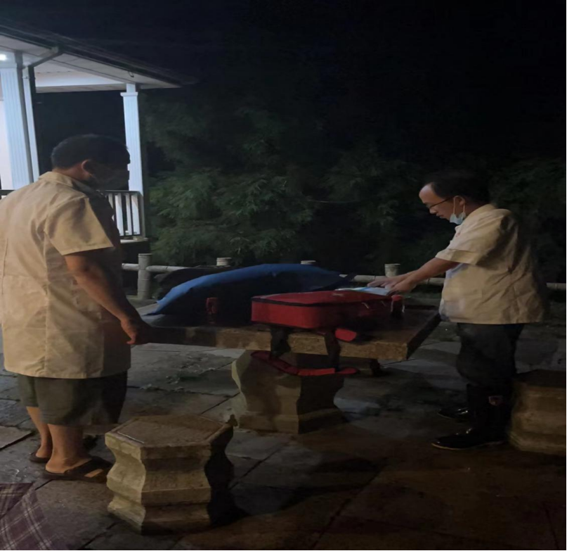 得悉萬女士的緊急狀況,指導(dǎo)員第一時間聯(lián)系了景區(qū)綜合執(zhí)法大隊大隊長劉運中,劉運中接到匯報后立刻安排天柱山急救站醫(yī)護人員與執(zhí)法隊員、景區(qū)派出所工作人員一起前往煉丹湖接待中心進行救助,安排客運公司人員駕駛急救車輛在大龍窩游客出口待命,同時向景區(qū)管委會相關(guān)領(lǐng)導(dǎo)和市疫情防控指揮部進行了匯報,并奔赴景區(qū)現(xiàn)場指揮救助。于是,雷雨交加的景區(qū)山徑夜幕中就出現(xiàn)了一群打著手電筒行色匆匆的一群人。