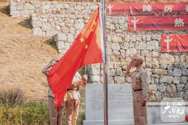大皖新聞訊 10月1日上午,抗美援朝老兵及其子女、港澳臺同胞代表以及天柱山游客、志愿者在天柱山愛園舉行。伴隨著莊嚴雄壯的國歌,鮮艷的五星紅旗緩緩升起,在湛藍的天空上高高飄揚,全體人員面向國旗莊嚴敬禮。他們凝視著鮮紅的國旗,表達最崇高的敬意,在“祖國母親 我想對您說”大型留言板上向祖國母親深情告白。